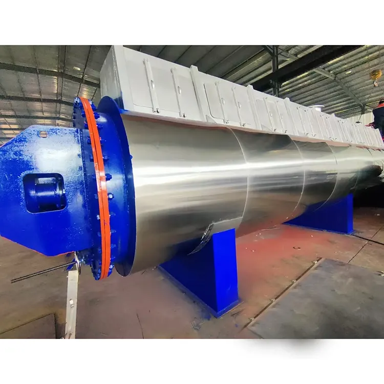 เครื่องเป่าไวน์ Lees เป็นอุปกรณ์อบแห้งแบบต่อเนื่องแบบการนำไฟฟ้าที่มีประสิทธิภาพสูง เครื่องเป่าไวน์ Lees ถ่ายโอนความร้อนไปยังวัสดุผ่านผนังถ่ายเทความร้อน ส่วนหนึ่งของไอน้ำเข้าสู่พื้นที่วงแหวนระหว่างเปลือกนอกและผนังด้านในของกระบอกสูบทำให้วัสดุผ่านผนังด้านในและน้ำควบแน่นจะถูกปล่อยออกจากพอร์ตท่อระบายน้ำด้านล่าง อีกส่วนหนึ่งของไอน้ำเข้าสู่เพลาหลักและขดลวดทำให้เพลาหลักและขดลวดหลักร้อนและน้ำควบแน่นจะถูกปล่อยออกมาจากพอร์ตข้อต่อแบบหมุนท่อระบายน้ำ เมื่อเพลาหมุนวัสดุจะถูกกวนและอุ่นอย่างสมบูรณ์โดยการกระทำรวมของใบพัดและขดลวดเพื่อให้วัสดุมีการสัมผัสสูงสุดกับเพลาหมุนและขดลวด ไอน้ำทุติยภูมิจะถูกปล่อยออกจากห้องไอน้ำด้านบนของเปลือกหอยผ่านท่อร่างที่เหนี่ยวนำให้เกิด สูญญากาศที่อ่อนแอจะถูกเก็บรักษาไว้ในท่อเพื่อป้องกันไม่ให้ไอน้ำของเสียออกจากการรั่วไหลออกมาและเพื่อหลีกเลี่ยงการดูดซับอากาศเย็นมากเกินไป แผ่นยึดวัสดุที่ติดตั้งบนเพลาหลักตั้งอยู่ระหว่างขดลวดความร้อน มันไม่เพียง แต่สามารถผลักดันวัสดุให้ก้าวไปข้างหน้า แต่ยังมีเอฟเฟกต์การทำความสะอาดตัวเองซึ่งสามารถถอดชั้นครอบคลุมบนเพลาและผนังกระบอกสูบเพื่อรักษาความสามารถในการถ่ายเทความร้อนที่ดี